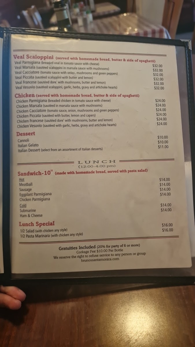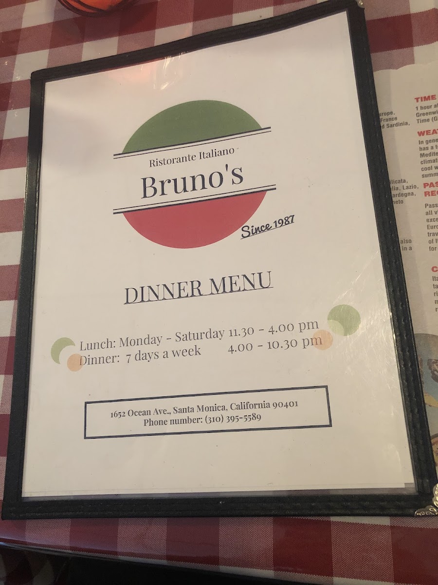 Welcome to Bruno's Italian Restaurant, a cozy gem nestled in prime Santa Monica. Located at 1652 Ocean Ave, this charming eatery offers a genuinely authentic Italian dining experience. Known for its inviting atmosphere and exceptional service, Bruno's is a must-visit for anyone craving classic Italian cuisine.